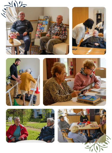 Les résidents peuvent se retrouver à leur convenance, entre eux ou avec leurs familles, à différents endroits de la résidence :
